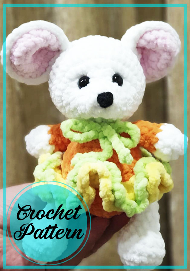 This plush toy mouse Mia is crocheted using the amigurumi technique. See the description of crocheting a mouse from @ a.n.a.s.t.a.s.i_v. The height of the finished knitted toy is about 20 cm.