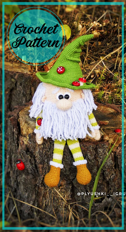 For the beard of the New Year’s gnome, I use white Alize Softy Plus 55 yarn, for the forest gnome Alize Softy 224 in gray.