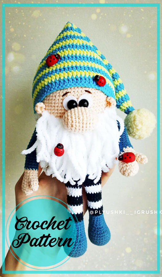 A master class on crocheting a New Year’s gnome amigurumi from Tatiana Poddubskaya. The author knitted the toy with crochet number 2.25 with stitches made of semi-cotton yarn Alize Cotton gold, Yarnart Jeans, Softy and Softy plus.