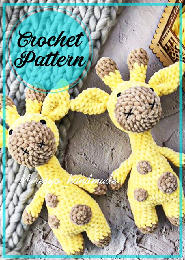 Cute amigurumi plush giraffe from Maresya Handmade @maresya_handmade. To crochet a toy, you need Himalaya Dolphin Baby yellow and brown yarn and hook number 5. When using these materials, the size of an amigurumi giraffe will be about 30 cm.